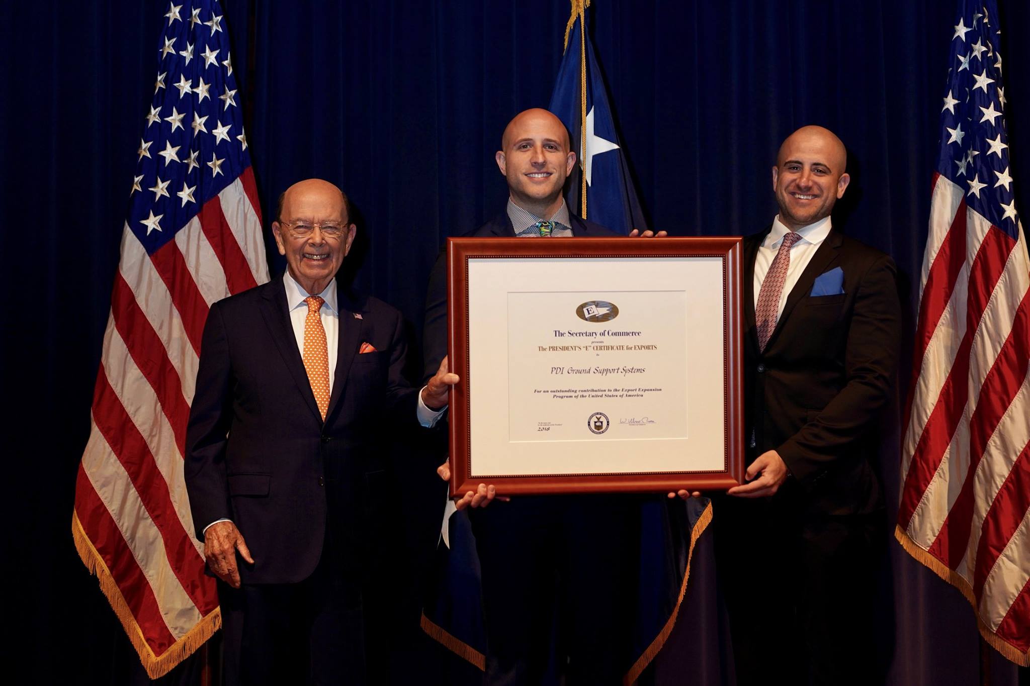Nathan Haber (R) and Ryan Haber (M) accepting the Presidential “E Award” for Export Excellence from Secretary of Commerce, Wilbur Ross.
